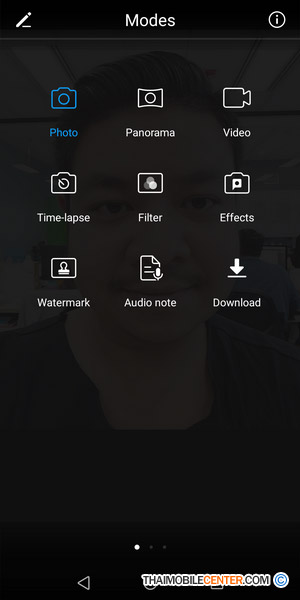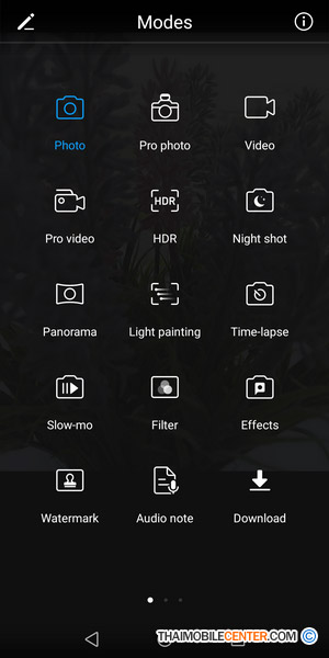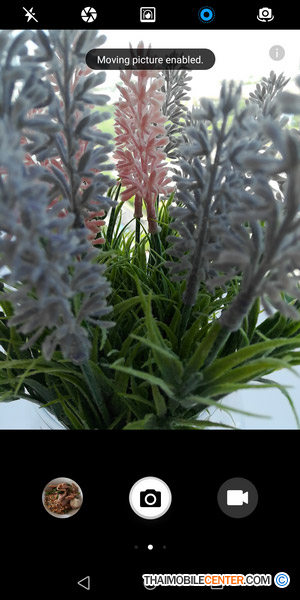 สำหรับ Interface ของกล้องถ่ายภาพก็มีหน้าตาที่สามารถใช้งานได้ง่าย พร้อมแสดงไอคอนฟังก์ชันเอาไว้ให้เลือกใช้งานได้อย่างสะดวกสบาย ไม่ว่าจะเป็น การใช้งานไฟแฟลช LED, การปรับค่ารูรับแสง, โหมดถ่ายภาพ Portrait หรือฟังก์ชัน Moving Picture และมีโหมดถ่ายภาพให้เลือกใช้งานหลากหลาย ไม่ว่าจะเป็น โหมดถ่ายภาพปกติ, โหมดถ่ายภาพโปร, โหมดถ่ายภาพกลางคืน หรือโหมดถ่ายภาพ Light Painting เป็นต้น