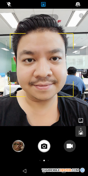 สำหรับโหมดถ่ายภาพ Portrait นั้นสามารถเปิดใช้งานฟังก์ชัน Bokeh เพื่อเบลอฉากหลังให้ตัวแบบดูโดดเด่นขึ้นได้ อีกทั้งยังสามารถปรับค่าผิวเนียนได้มากถึง 10 ระดับ
