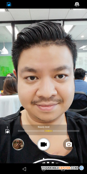 ตัวอย่างภาพที่ถ่ายด้วยโหมดถ่ายภาพหน้าสวย พร้อมปรับค่าระดับ 5 และเปิดใช้งานฟังก์ชัน Bokeh