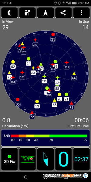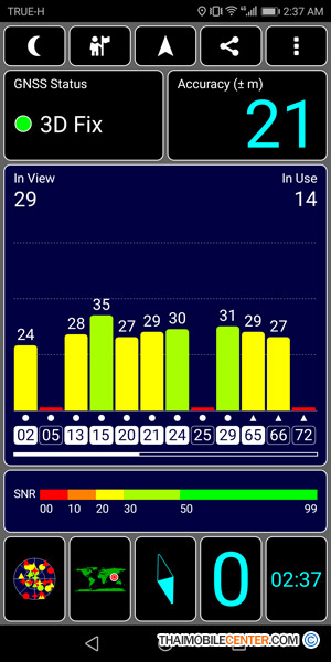 สามารถจับสัญญาณดาวเทียม GPS ในที่กลางแจ้งได้ดี พร้อมรองรับระบบดาวเทียม GLONASS ของรัสเซีย และ Beidou ของจีน โดยจากภาพตัวอย่างการทดสอบข้างต้นจะเห็นว่าสามารถจับสัญญาณดาวเทียมได้ทั้งหมด 29 ดวง และมีความแม่นยำในระดับบวกลบ 21 เมตร แต่อย่างไรก็ดีคุณภาพของสัญญาณดาวเทียม GPS ก็ขึ้นอยู่กับพื้นที่ ที่กำลังใช้งานอยู่ด้วยนั่นเอง