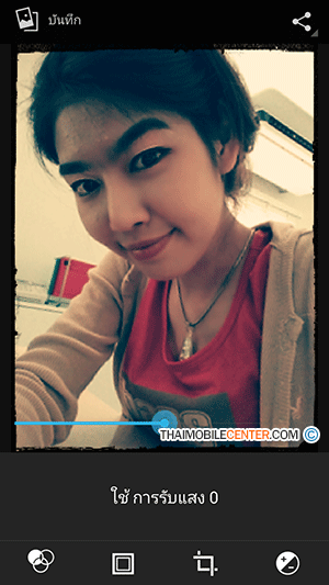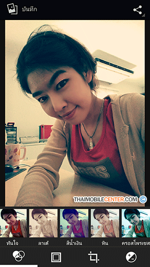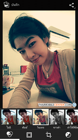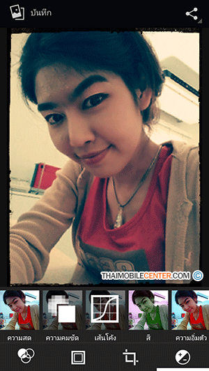 และเมื่อเลือกไอคอนเข้ามาแล้ว ก็จะพบกับฟังก์ชันหลัก 4 แบบ ด้วยกัน ซึ่งฟังก์ชันแรกจะเป็นการแต่งรูปภาพในแบบต่างๆ ได้แก่ ไม่มี, พันซ์, วินเทจ, ขาวดำ, ทำให้สีซีด
