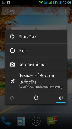 และเมื่อกดปุ่ม เปิด-ปิด เครื่องค้างไว้ประมาณ 2 วินาที ก็จะพบกับฟังก์ชัน ดังนี้คือ ปิดเครื่อง, รีบูตเครื่อง, จับภาพหน้าจอ, โหมดการใช้งานบนเครื่องบิน, ปิดเสียง, เปิดระบบสั่น และเปิดเสียง