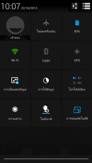นอกจากนี้ ยังสามารถ เปิด-ปิด ฟังก์ชัน ต่างๆ ได้ ไม่ว่าจะเป็น 3G, WiFi, ปรับค่าความสว่างของหน้าจอ และ GPS