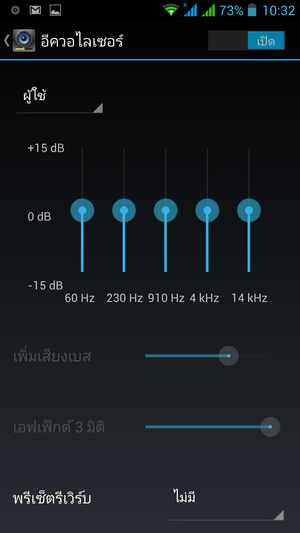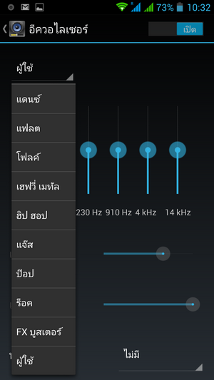 และยังสามารถตั้งค่า เปิด-ปิด อีควอไลเซอร์ได้ ซึ่งสามารถปรับค่าได้ด้วยตนเอง