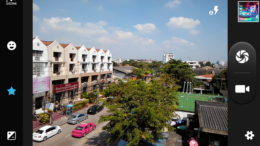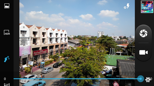 ที่เห็นอยู่นี้ก็คือ User Interface การถ่ายภาพ และการถ่ายวีดีโอบน i-mobile IQ X3 ของกล้องดิจิตอลตัวหลักที่ด้านหลังของตัวเครื่อง ความละเอียด 18 ล้านพิกเซล โดยสามารถสลับเปลี่ยนเป็นกล้องดิจิตอลขนาดเล็กที่ด้านหน้าของตัวเครื่อง ความละเอียด 8 ล้านพิกเซลได้ ด้วยไอคอนรูปกล้องมุมขวาบน ถัดจากไอคอนรูปกล้องจะเป็นไอคอนสำหรับ เปิด-ปิด หรือใช้งานอัตโนมัติของไฟแฟลช LED