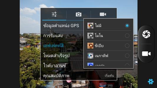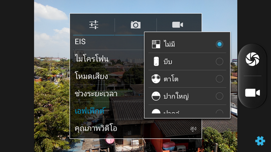 สามารถเลือกเอฟเฟ็กต์การถ่ายวิดีโอได้ เช่น ไม่มี,