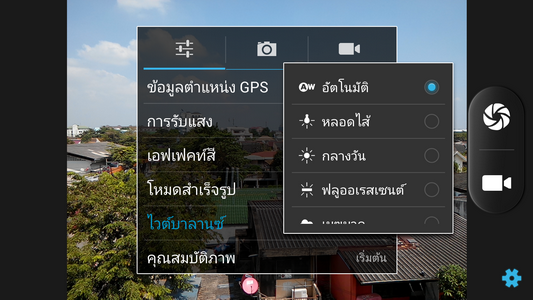 สามารถปรับค่าสมดุลแสงสีขาวได้ (White Balance) เช่น อัตโนมัติ,