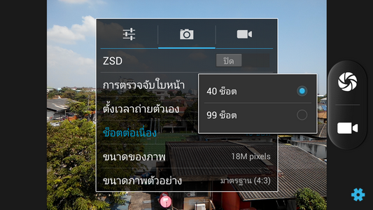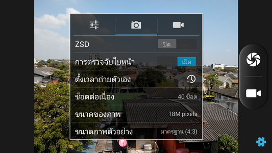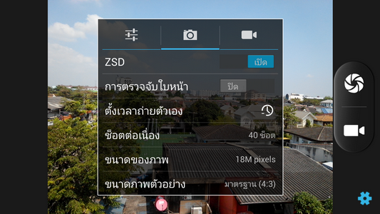 นอกจากนี้ ยังสามารถตั้งค่ากล้องถ่ายภาพได้ เช่น เปิด-ปิด ZSD (Zero Shutter Delay)