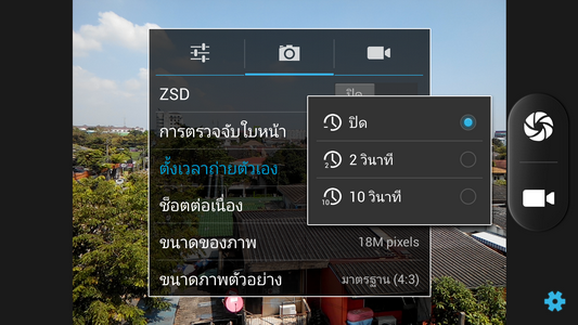 สามารถตั้งเวลาถ่ายวีดีโอล่วงหน้าได้ตั้งแต่ ปิด, 1 วินาที, 1.5 วินาที,
