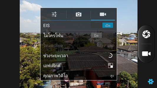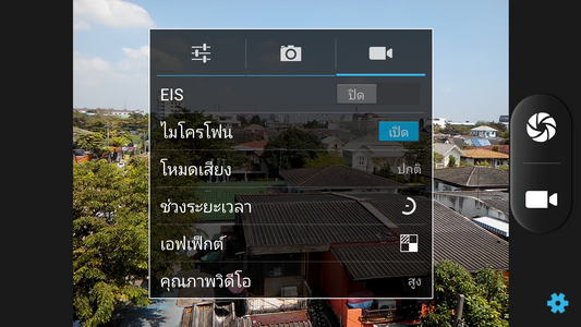 เช่น เปิด-ปิด ระบบป้องกันการสั่นแบบ EIS (Electronic Image Stabilization)
