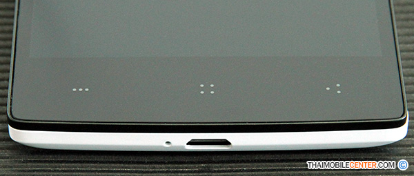 ด้านล่างของตัวเครื่อง : จะมีไมโครโฟน และช่องสำหรับเสียบสายชาร์จแบตเตอรี่ (microUSB)