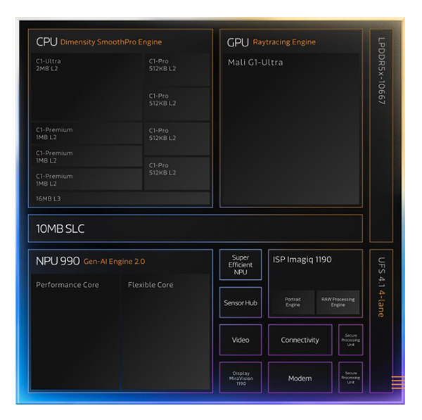 - ชิปเซ็ตประมวลผล MediaTek Dimensity 9500