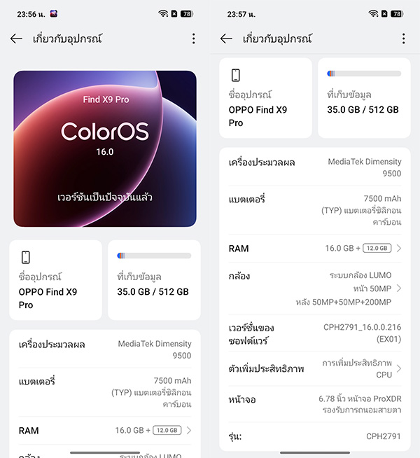 - OPPO Find X9 รุ่น RAM 16GB+ROM 512GB ราคา 34,999 บาท