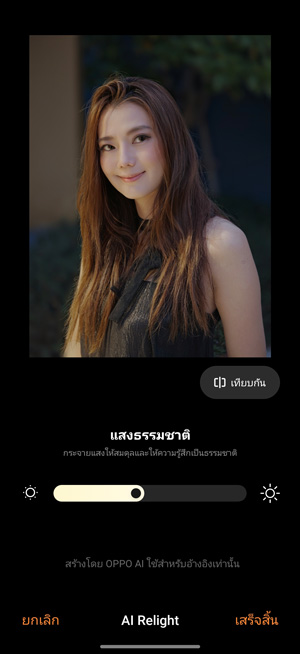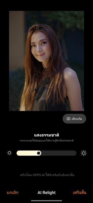 ColorOS 16 ได้ต่อยอดชุดเครื่องมือแก้ไขภาพด้วย AI ที่มีอยู่เดิม ด้วยฟีเจอร์ใหม่ล่าสุด นั่นก็คือ AI Portrait Glow ซึ่งเป็นเครื่องมือสำหรับแก้ไขภาพถ่ายบุคคลที่มีแสงไม่ดี ใบหน้ามืดกว่าปกติ เครื่องมือนี้จะช่วยปรับแสงให้ตัวแบบอัตโนมัติ