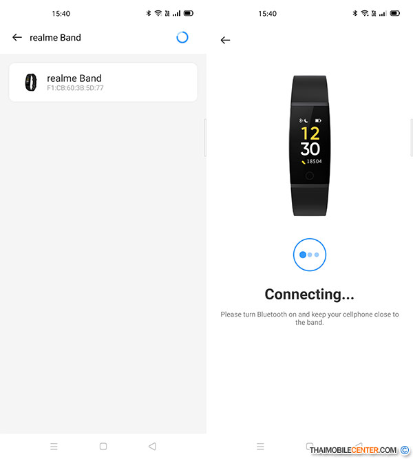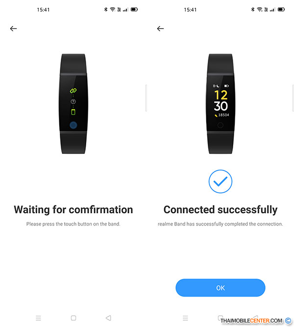 อุปกรณ์ทั้งสองเครื่องใช้เวลาค้นหากันเพียงครู่ เดียว และผู้ใช้ต้องกดยืนยันจับการจับคู่บน realme Band เพียงเท่านี้ก็เป็นอันเสร็จสิ้น
