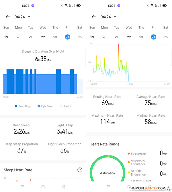 realme Band มาพร้อมกับเซ็นเซอร์ตรวจวัดอัตราการเต้นของหัวใจ (Heart Rate Sensor) แบบ PPG Optical ที่สามารถตรวจวัดได้แบบ Real-time ทุกๆ 5 นาที และบันทึกพฤติกรรมการนอนหลับ ไปจนถึงรูปแบบของการออกกำลังกายทั้งหมด 9 ประเภท