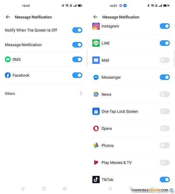 และการแจ้งเตือนจากแอปพลิเคชันยอดนิยมต่างๆ ได้ ไม่ว่าจะเป็น Facebook, Messenger, Line, Instagram และ Gmail โดยสามารถแสดงได้สูงสุด 64 ตัวอักษร
