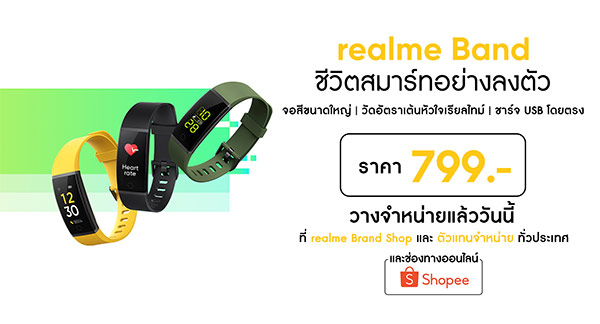 สำหรับ realme Band เปิดราคาจำหน่ายอย่างเป็นทางการในประเทศไทยสุดประหยัดเพียง 799 บาท กับตัวเลือก 3 สี ได้แก่ สีดำ, สีเหลือง และสีเขียว โดยเริ่มวางจำหน่ายแล้ววันนี้ ท่านใดที่สนใจ ก็สามารถแวะเวียนเข้าไปทดลองใช้งานเบื้องต้น ได้ที่ realme Brand Shop และร้านตัวแทนจำหน่าย รวมถึงช่องทางออนไลน์ที่ Shopee