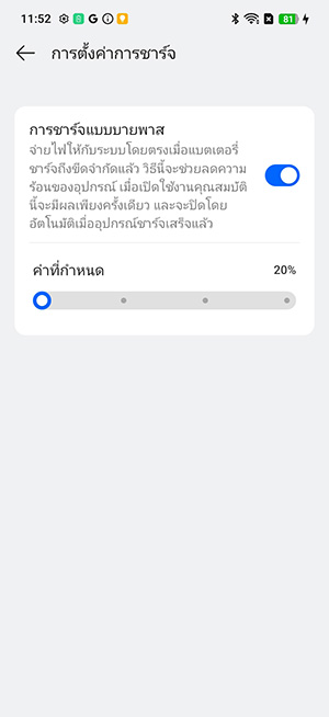 อีกทั้งยังสามารถตั้งค่าการชาร์จแบบ Bypass ได้ ซึ่งจะเป็นการจ่ายไฟให้กับระบบโดยตรงเมื่อแบตเตอรี่ชาร์จถึงขีดจำกัดแล้ว จึงช่วยลดความร้อนของอุปกรณ์ อายุการใช้งานของแบตเตอรี่จึงยาวนานขึ้น