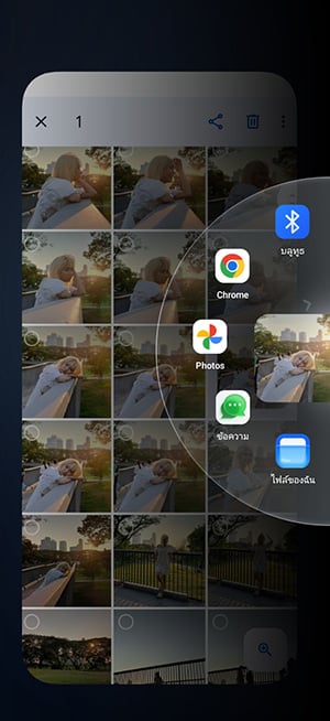 AI Smart Loop ผู้ใช้สามารถย้ายรูปภาพ ข้อความ ไปยังแอปพลิเคชันอื่นได้อย่างรวดเร็ว เพียงแค่กดค้าง และลากเนื้อหาไปยังขอบหน้าจอ AI Smart Loop ก็จะแนะนำแอปพลิเคชันที่เหมาะสมในรูปแบบของวงล้อ