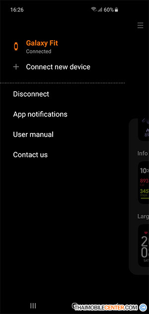 รวมถึงปรับแต่ง Quick Setting ว่าจะให้มีการแสดงเมนูใดบน Galaxy Fit บ้าง, เปิด-ปิด การแสดงสถานะต่างๆ ด้วยไอคอนบนหน้าจอ Galaxy Fit เช่น ไม่ได้เชื่อมต่อกัน หรือออกกำลังกาย และเลือกได้ว่าจะให้แจ้งเตือนเมื่อมีการ เชื่อมต่อ หรือหยุดการเชื่อมต่อกับตัว Galaxy Fit ได้
