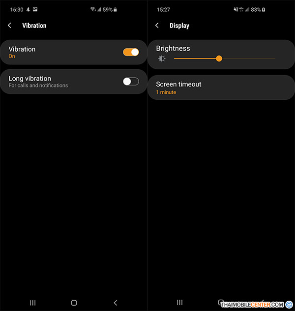 การสั่นแจ้งเตือนก็สามารถเลือกได้ว่าจะให้สั่น แบบปกติ หรือสั่นนานขึ้น รวมถึงตั้งค่าความสว่าง และระยะเวลาหน้าจอติดได้