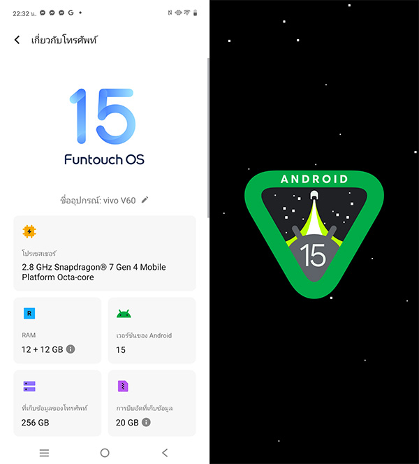 - ทำงานอยู่บนระบบปฏิบัติการ Android 15 พร้อมครอบทับด้วย Funtouch OS 15