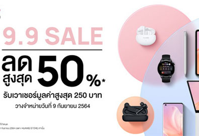 มหกรรมลดหนัก Huawei 99 Mega Sale นำเสนอดีลสุดคุ้มถึง 3 ต่อ ทั้งส่วนลดสูงสุด 50% คูปองของขวัญจากช่องทางอีคอมเมิร์ซสูงสุด 250 บาท และ Flash Sale เริ่มต้น 10 บาทเท่านั้น ตั้งแต่วันที่