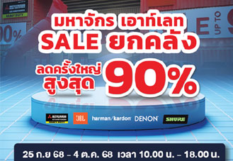 มหกรรม Mahajak Outlet Sale ยกคลัง 2025 ที่รามคำแหง 25 ก.ย. 2568 – 4 ต.ค. 2568 ลดสูงสุด 90% ครบลำโพงพกพา หูฟัง Home/Professional Audio และ JBL Car Audio พร้อมนาทีทองทุกวัน 10:00–18
