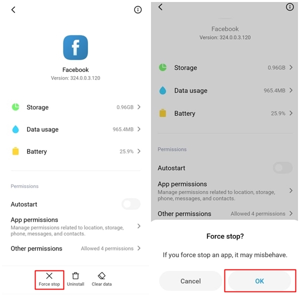 ก็ให้ลองทำตามวิธีการดังกล่าวมาทั้งหมดข้างต้น และกดปุ่ม Force Stop แล้วตามด้วย OK
